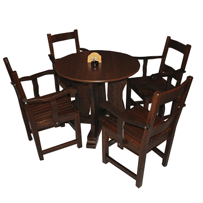 Acest set de lemn de 4 persoane este ideal pentru baruri sau cafenele deoarece scaunele cu spătar și cotiere asigură un un confort sporit, iar masa rotundă asigură spațiul necesar servirii unui mic dejun/ prăjituri etc.